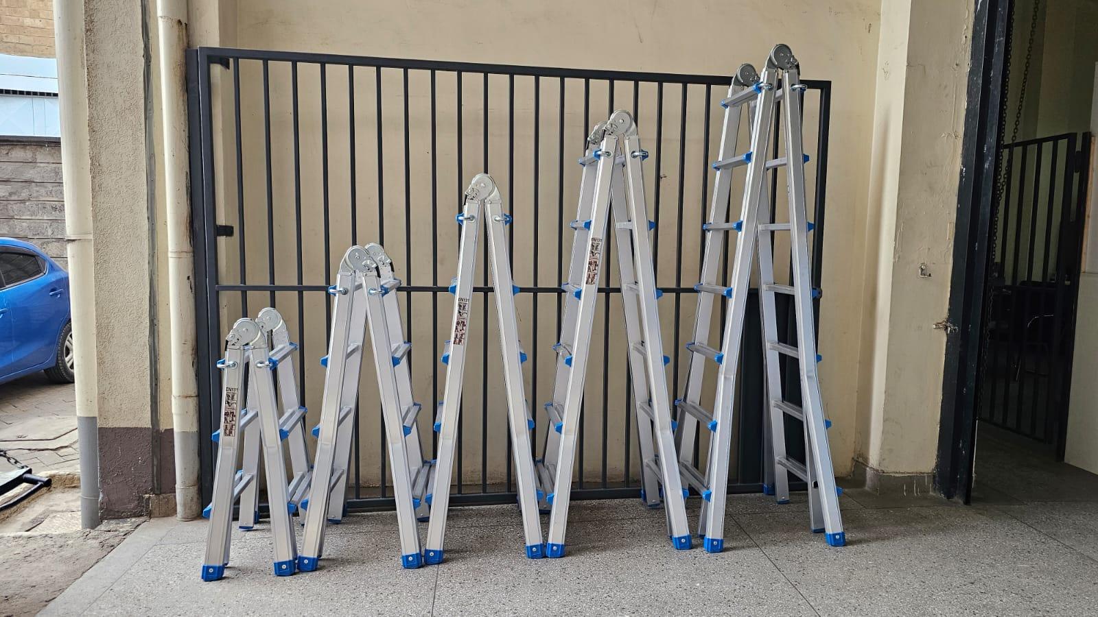 The ladder can be used in many unique configurations as an A-frame, extension, staircase, and 90-degree ladder.