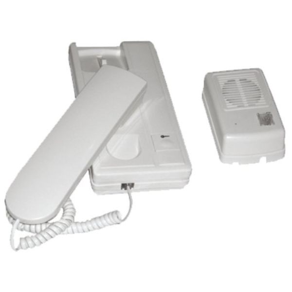 When you want to have a talk with the other, press down the push button and the bell of his or her set will ring no matter whether you take up your handset or not.